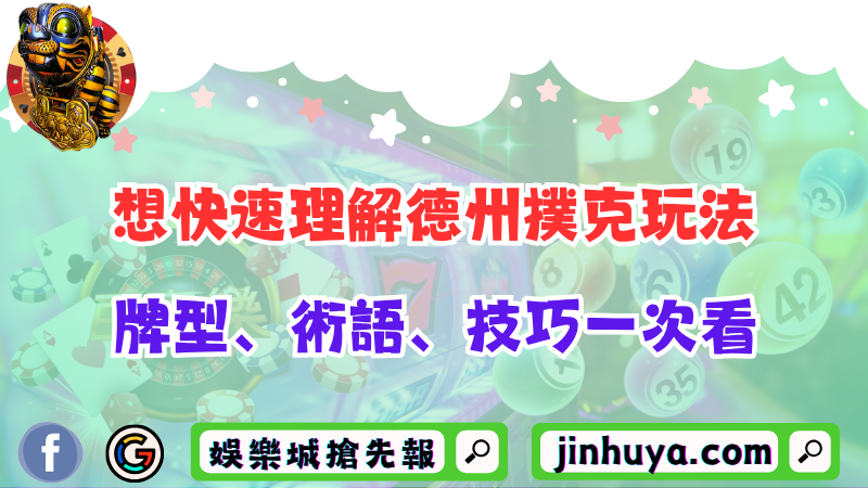 德州撲克玩法規則會是進入遊戲前必須要先做的功課,也是新手第一步該懂的,再來就是認識每個德州撲克牌型以及所有德州撲克術語,若想在這項遊戲中穩定獲利,德州撲克技巧會是最關鍵!