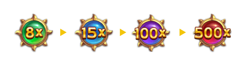 - 只要消除到倍數符號就有機會升級,最高可達500倍。