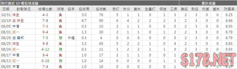 3.再來是責失分表現,樂天桃猿先發10次出賽沒半次失到3分以上的紀錄,而味全龍先發3次出賽就有2次失到3分以上的紀錄。因此 一樣是樂天桃猿先發表現較好。